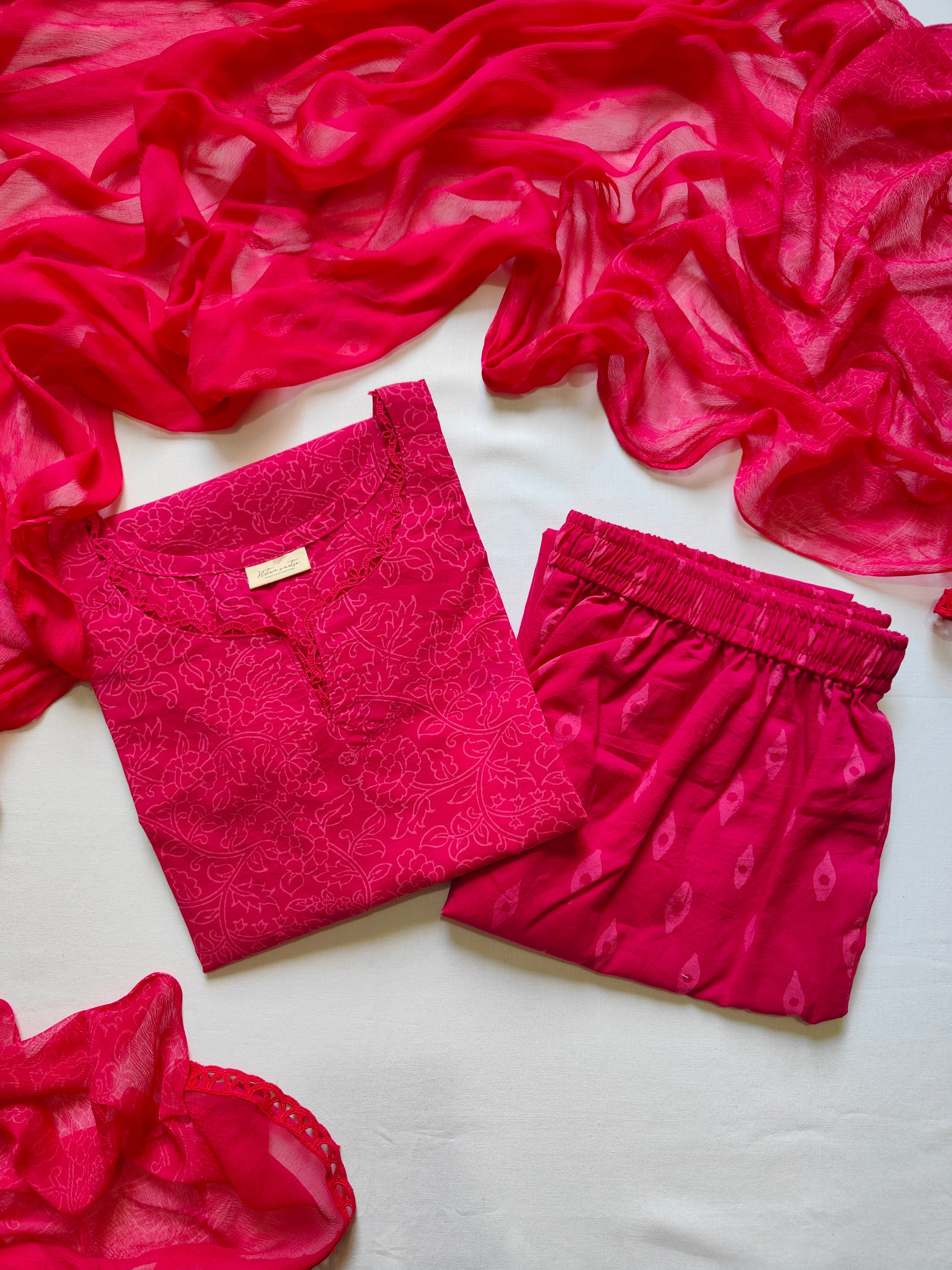 Cotton suit set with chiffon dupatta